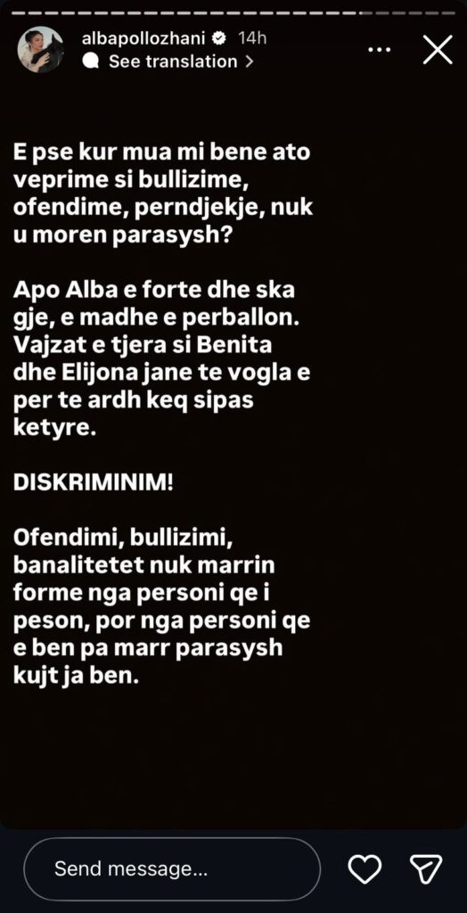 Ajo është shprehur se kur asaj i janë bërë veprime si bullizime, ofendime, përndjekje nuk u morën parasysh në këtë reality-show.