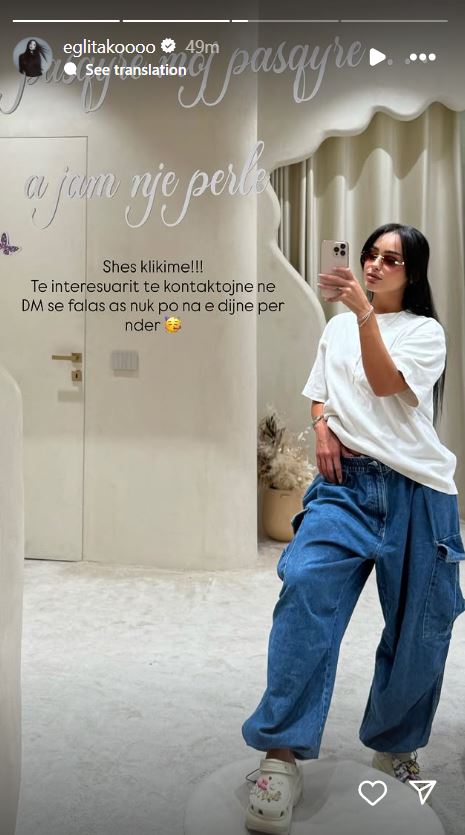 “Shes klikime!!! Të interesuarit të kontaktojnë në DM, se falas as nuk po na e dijnë për nder”, shkruan Egli.