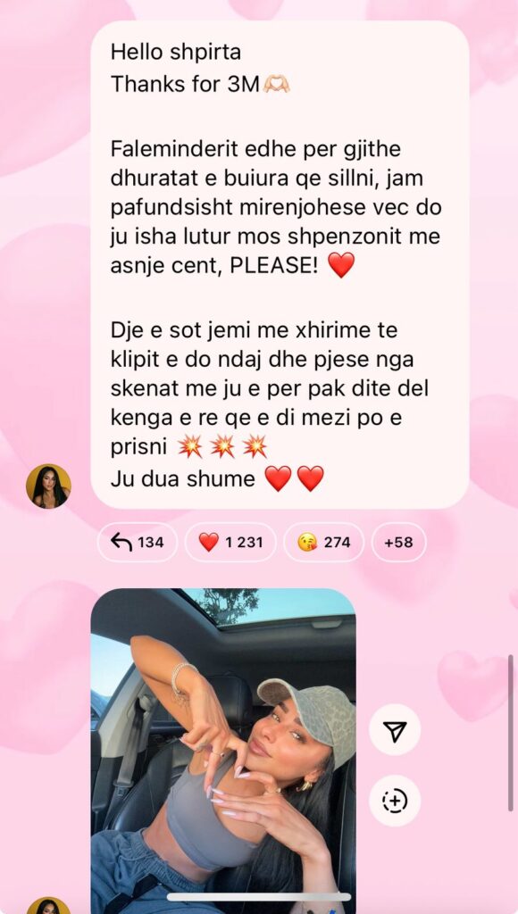 Faleminderit edhe per gjithe dhuratat e buiura qe sillni, jam pafundsisht mirenjohese vec do ju isha lutur mos shpenzonit me asnje cent, PLEASE! ❤️