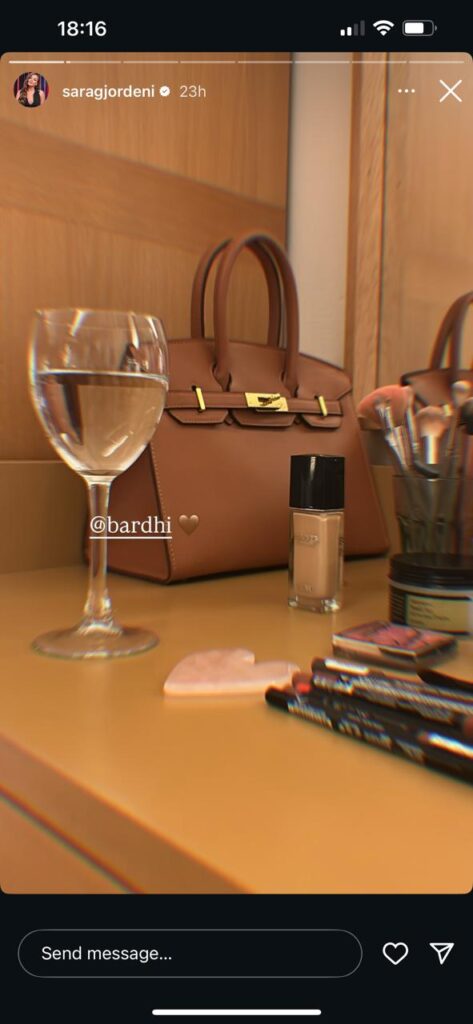 Në një postim të saj në Instagram, Sara ka ndarë një imazh ku bie në sy një çantë luksoze Hermès, me vlerë prej dhjetëra mijëra eurosh.