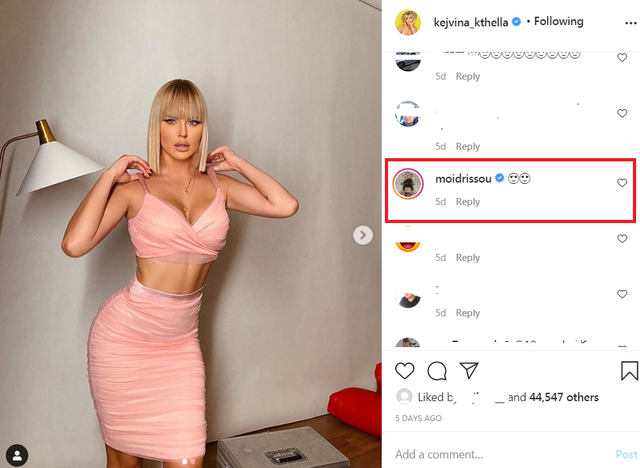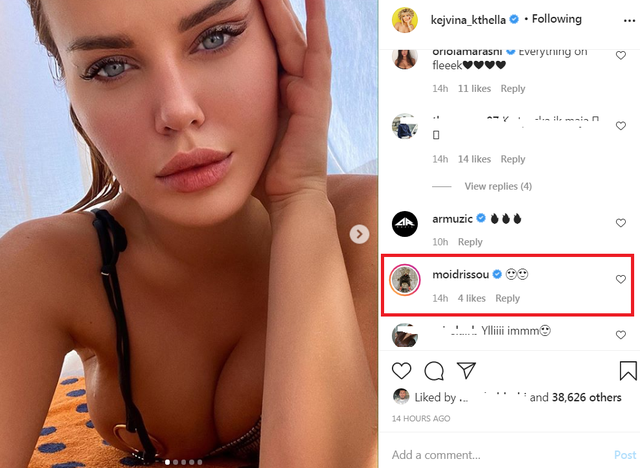 Kjo është vënë re nga disa postime që ajo ka bërë në “Instagram”, ku shihet se herë pas here Idrissou i komenton nëpër fotot provokuese që ajo poston.