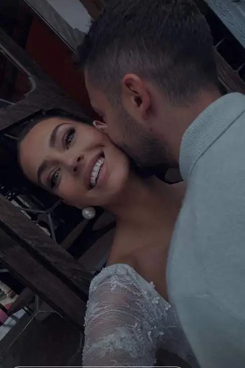 Në një nga imazhet, ajo shihet duke u përqafuar me një mashkull misterioz, çka i ka bërë ndjekësit të dyshojnë se modelja i ka dhënë fund beqarisë dhe është martuar.