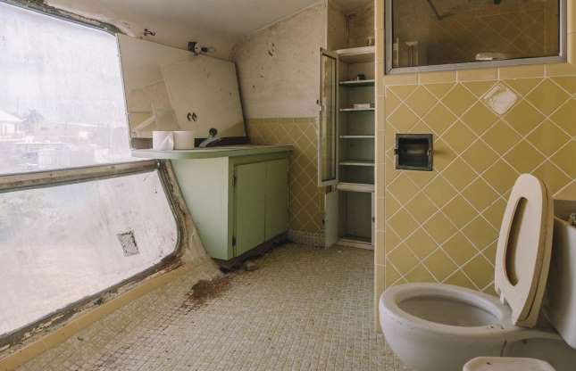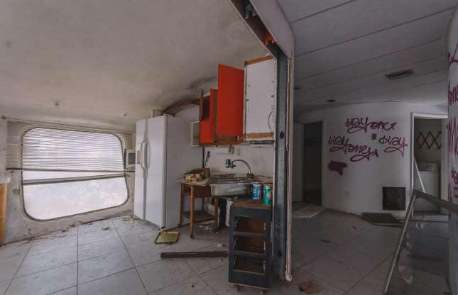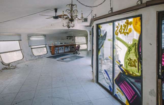 Në foto mund të shihni gjithashtu se si është jetuar dikur, por që megjithatë braktisja ka bërë që shumë gjëra të dëmtohen. “Vizitorët e paftuar” kanë bërë grafite nëpër dritare, ndërsa pjesa e brendshme e shtëpisë duket e zbrazët. Prona u ble nga një kompani private në dhjetor të vitit 2012 për 950,000 dollarë, por siç tregon kjo fotografi nuk u bë asgjë për t’u rikonstruktuar.