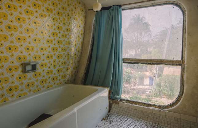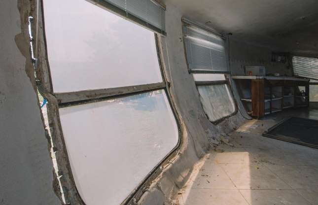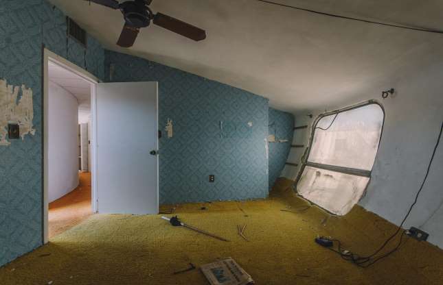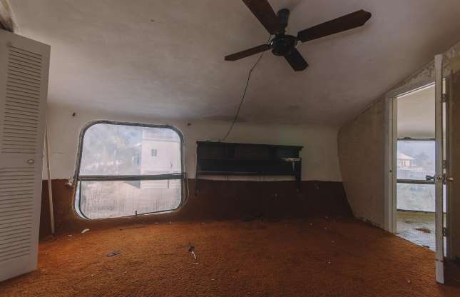 Falë dizajnit të saj unik, shtëpia e UFO-ve u ishte në gjendje të duronte erëra të larta deri 300 mph, si dhe një uragane të kategorisë së 5-të. Megjithatë pasi u braktis shtëpia është rrënuardhe madje dritaret siç shihet në foto duket se po shkëputen nga muret. /Përshtatur nga Msn për Labirinth