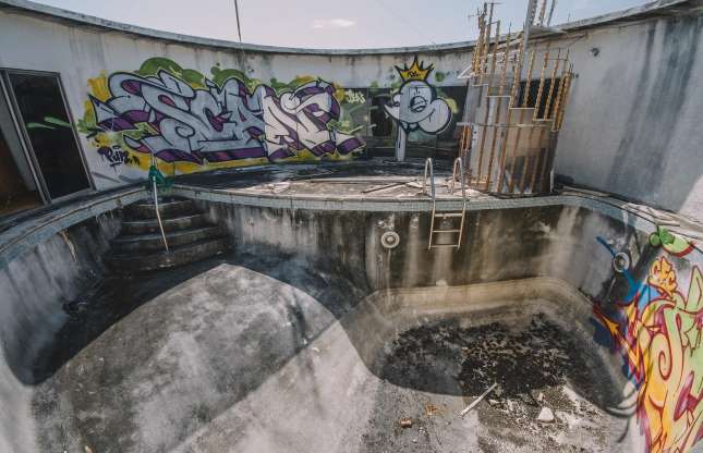 Shtëpia u projektua rreth një kornize rrethore prej betoni, ndërsa dhomat ishin me pamje nga një pishinë me thellësi 10 metra. Pavarësisht se në foto duket keq mund ta imagjinoni se sa spektakolare ishte kjo pishinë dikur, veçanërisht gjatë kulmit të verës në Florida. Shtëpia u përfundua së ndërtuari në vitin 1978.