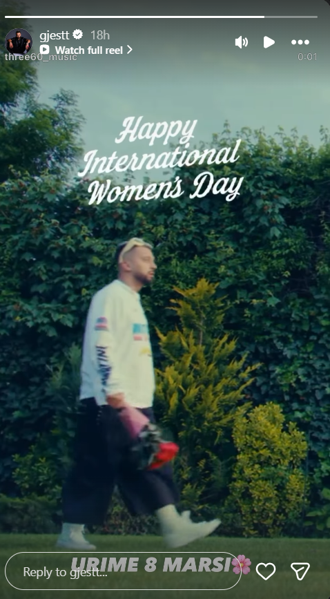 Në videoklip, ai shihet me një buqetë me lule të cilën e afron para kamerës, ndërkohë që në postimin e tij shkruan: “Urime 8 Marsi”.