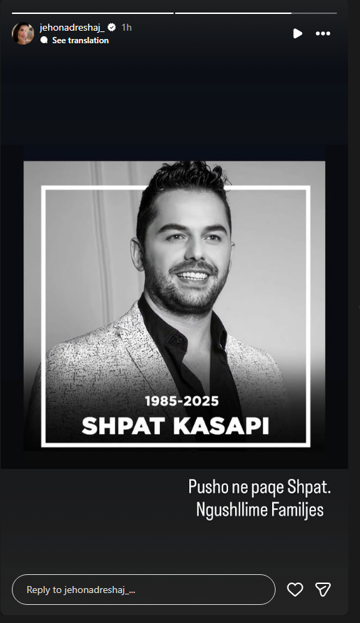 Pas ndarjes nga jeta të Shpat Kasapit, motra e Afërdita Dreshajt, Jehona ka shprehur ngushëllimet e saj nëpërmjet një postimi në rrjetet sociale.