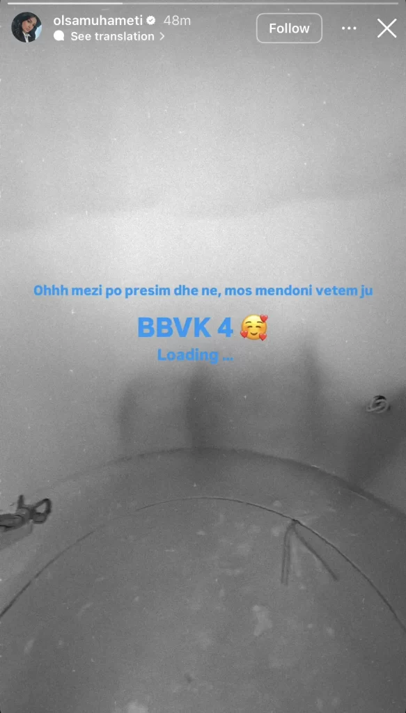 “Ohhh mezi po presim dhe ne, mos mendoni vetëm ju. BBVK 4 loading…”, shkroi Olsa, duke e shoqëruar mbishkrimin me një foto që të lë të kuptosh se përgatitjet janë në fazat përfundimtare.