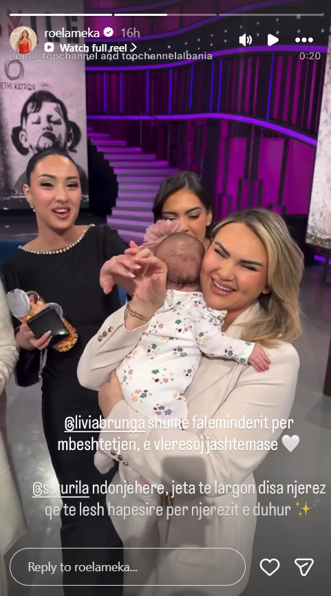 Ajo gjithashtu ka dhënë dhe një mesazh për ish-konkurrenten e “Përputhen”, Stelina. Në një postim në Instastory, Roela shkruan: “Ndonjëherë jeta të largon disa njerëz, që të lësh hapësirë për njerëzit e duhur”.