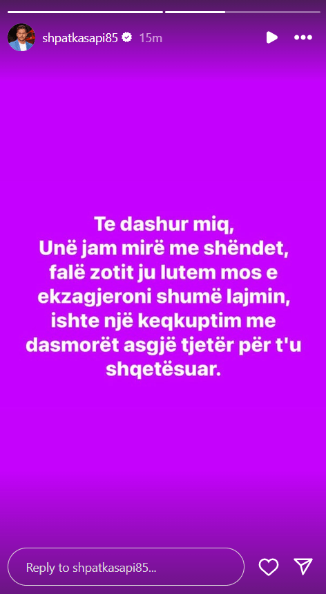 “Të dashur miq, unë jam mirë me shëndet, falë Zotit. Ju lutem mos e ekzagjeroni shumë lajmin, ishte një keqkuptim me dasmorët, asgjë tjetër për t’u shqetësuar”, shkruan ai.