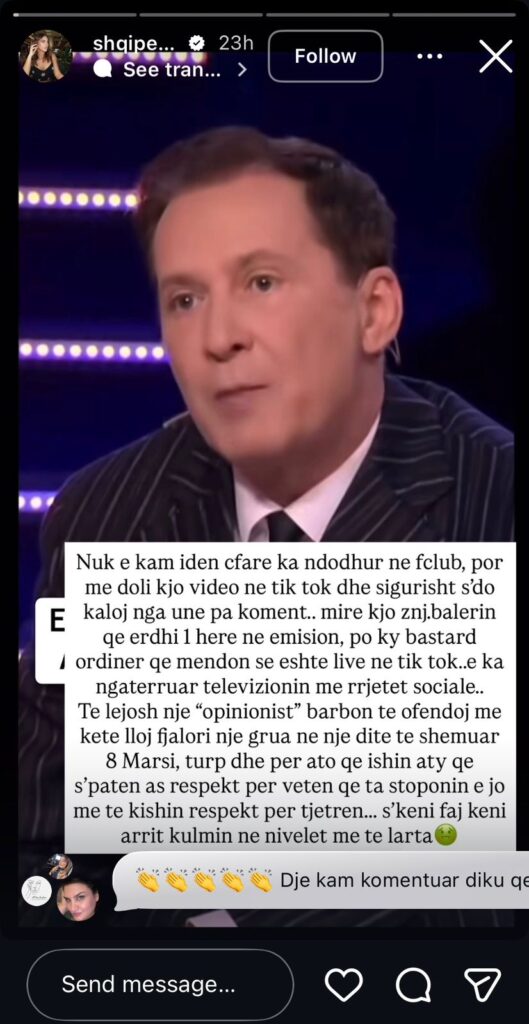 Kjo deklaratë e Arjanit është komentuar nga Shqipe Hysenaj, e cila ka bërë një postim në Instastory.