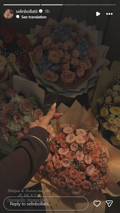 Selin i ka postuar këto buqeta në Instastory, ku ka shkruar: “Shtëpia dhe zemra ime plot”.