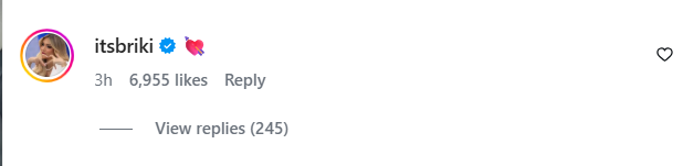 Por ai që ra në sy ishte komenti i Brikenës, e cila ka komentuar një zemër me shigjetë.